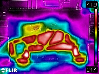 On the bottom of the laptop, the hottest spot measured 44.9 degrees Celsius (112.8 degrees Fahrenheit).