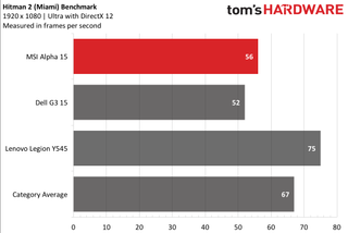 On Hitman 2’s Miami benchmark (FHD, ultra), it ran at 56 fps, falling short of the 68 fps average and the Legion (78 fps) but beating the Dell G3 (51 fps.)
